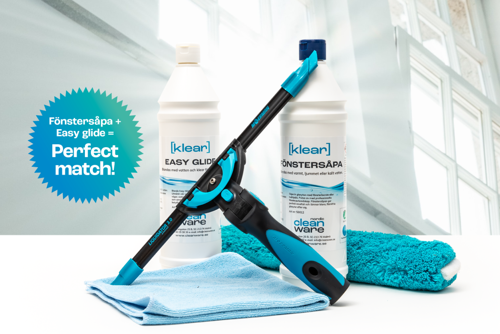 Glasklara fönster och glasytor med Klear fönstersåpa och Easy Glide. Vi har allt du behöver för bästa resultat!