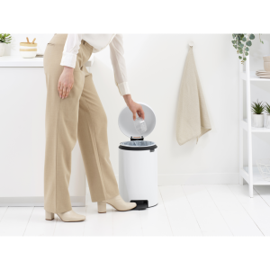 Pedalhink Brabantia NewIcon 12L Vit kombinerar stilren design med funktionell effektivitet, perfekt för hemmet eller kontoret. Med en smidig volym på 12 liter passar hinken utmärkt i kök, badrum, hobbyrum eller barnrum tillräckligt rymlig för dagligt avfall men ändå kompakt nog att stå diskret under en bänkskiva.