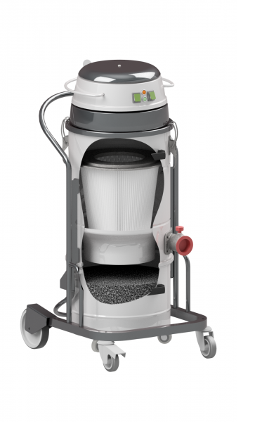 Den mobila behållaren på hjul rymmer damm och smuts och lossas enkelt för smidig tömning. Tillbehör i 40 mm-utförande (TA.0254.0000) ingår som standard, vilket gör dammsugaren redo att användas direkt vid leverans.