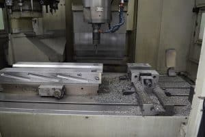 Positionera maskinen vid CNC-maskinen där olja och metallspån ska avlägsnas.