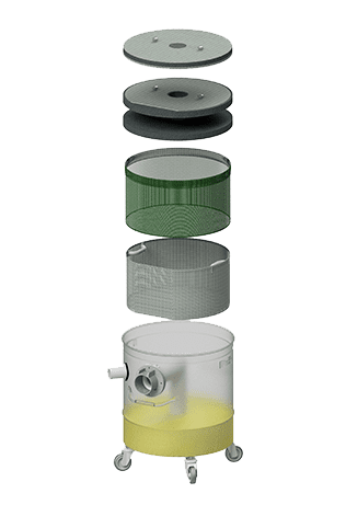 Inertion innebär att det uppsugna materialet går genom ett vatten eller oljebad