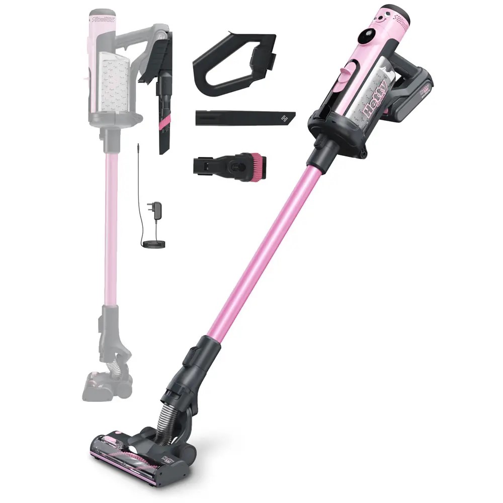 Hetty Quick Skaftdammsugare Numatic Rosa är en modern, sladdlös dammsugare som kombinerar stark prestanda med smart och hygienisk hantering. Den är särskilt framtagen för dig som vill städa snabbt och effektivt - utan att tumma på komfort eller miljöhänsyn. Den låga vikten gör den enkel att bära mellan rum, och det avtagbara batteriet ger full frihet utan sladdtrassel.