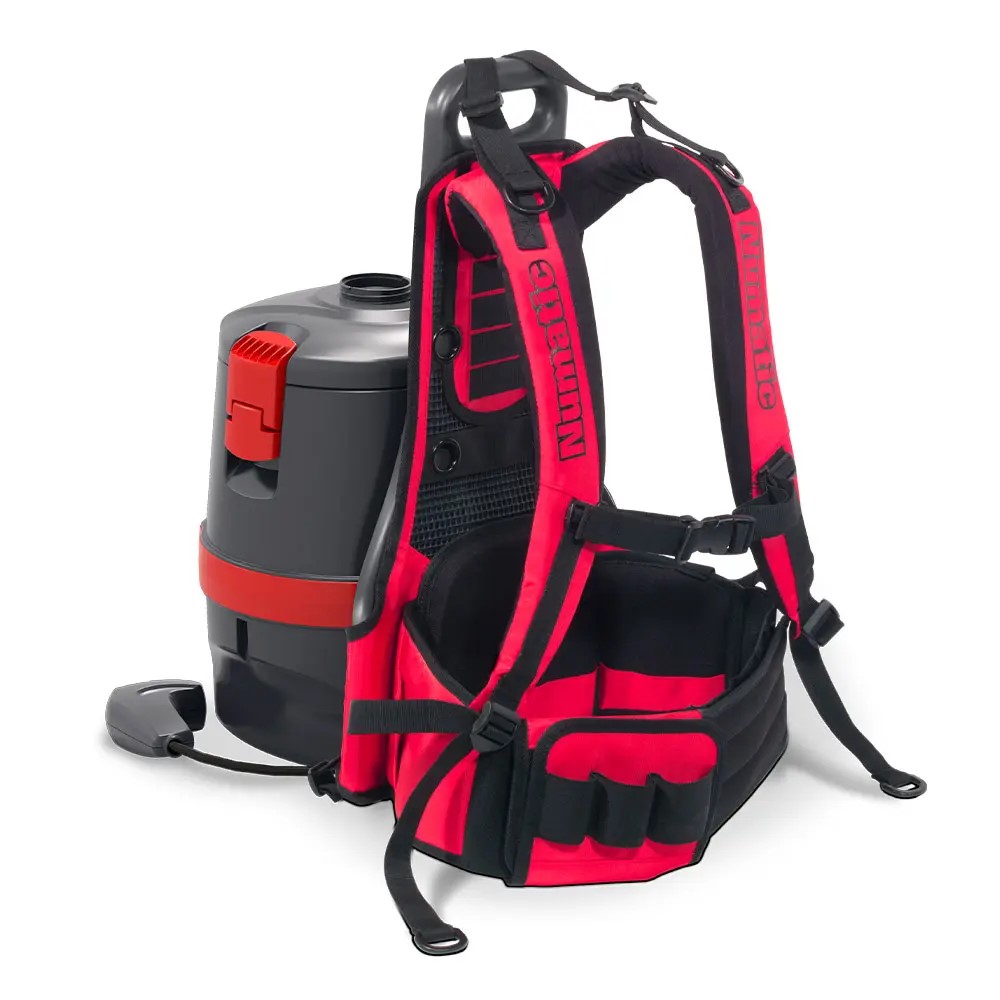 Ryggdammsugare Numatic RSV150 kabeldriven 230V är en kraftfull ryggsäckdammsugare utvecklad för professionella städmiljöer där flexibilitet och rörelsefrihet är avgörande. Den ergonomiska designen gör att användaren enkelt kan arbeta i trånga utrymmen som biografsalonger, bussar, trapphus och kontorsmiljöer där en traditionell dammsugare kan vara svår att använda.