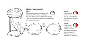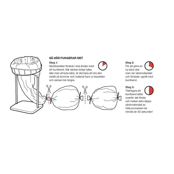 En Longopac-påse är ca 22mm lång och försluts efter behov med buntband så att det uppsugna materialet stannar i dammsugarens system utan att
