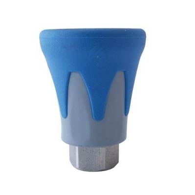 Rostfri anslutningsmutter med 1/4" gänga i båda ändarna. Munstycksskydden finns i olika färger, för att man lätt ska kunna