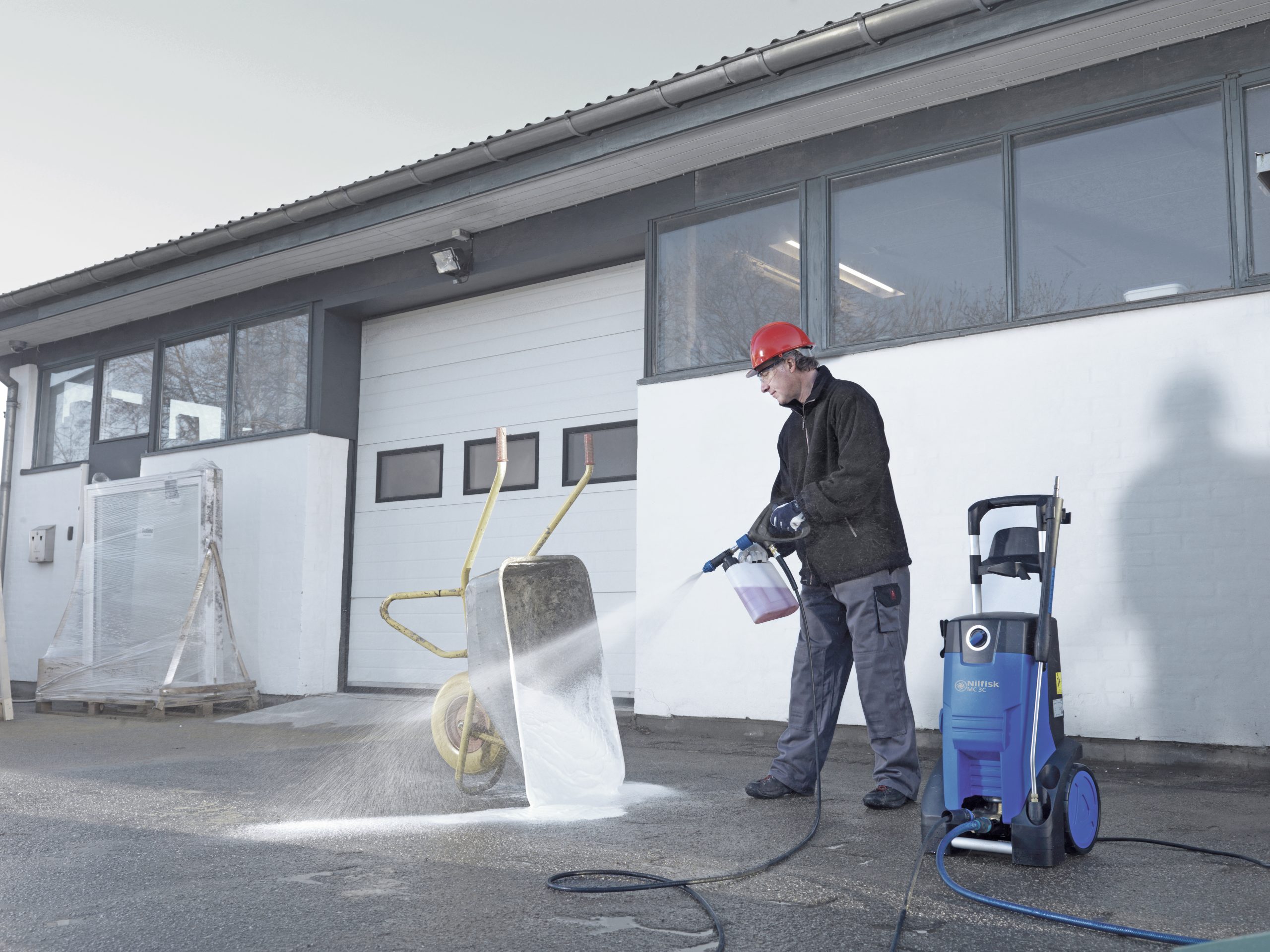 Ett viktigt element är den nya skumutrustningen, som är ett enkelt och ekonomiskt sätt att påföra rengöringsmedel, när det behövs. Skumutrustningen genererar ett tjockt lager med skum, som sitter kvar på ytan - det ökar rengöringseffekten. Tvätten har ingen intern injektor till rengöringsmedel. Det minskar energiförlusten och ger ökat munstyckstryck och ökad rengöringseffekt