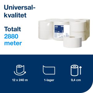 Toalettpapper Tork 1-lager Universal Mini Jumbo T2 12rl