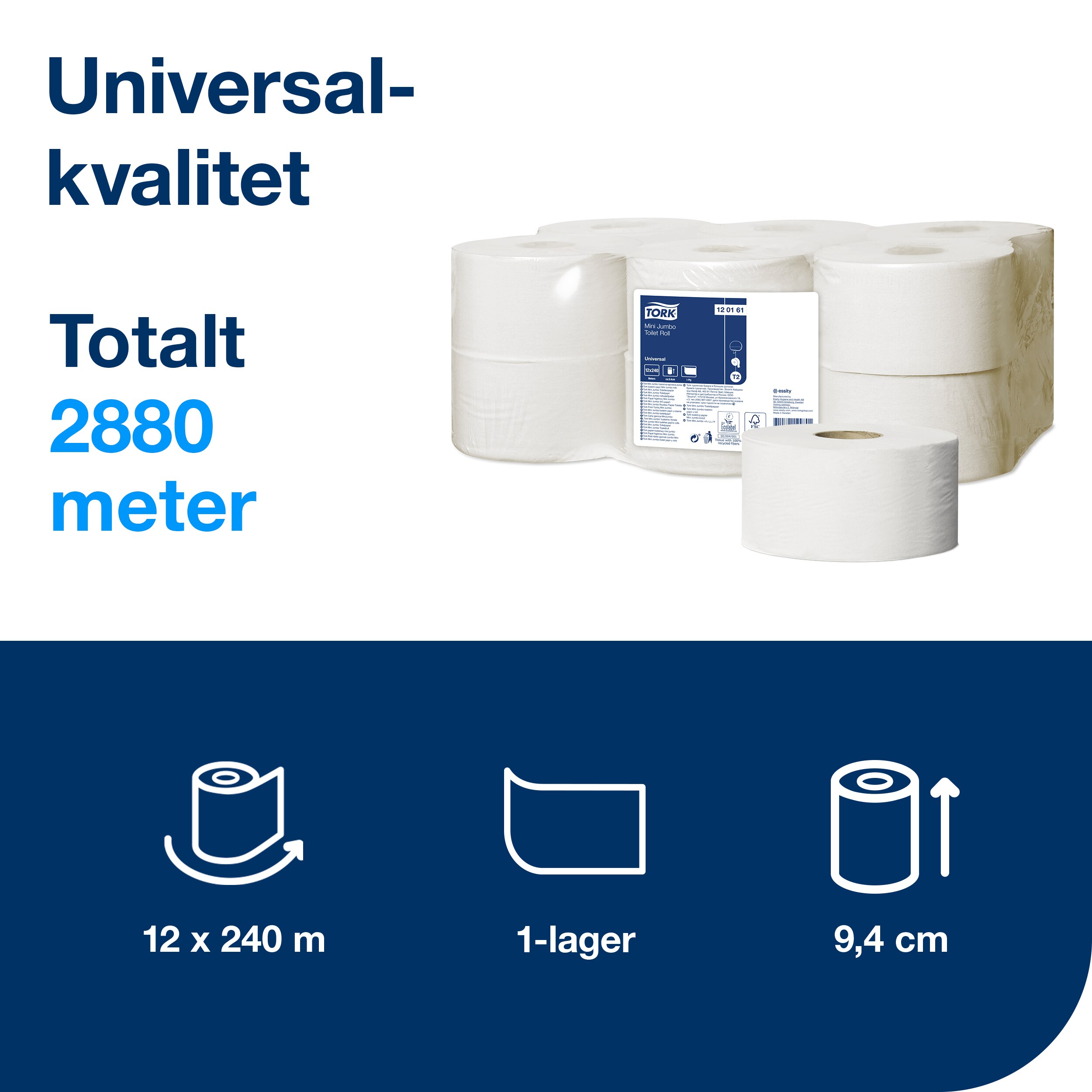 Fördelarna med Tork Mini Jumbo Toalettpapper Universal-1-lagers inkluderar: