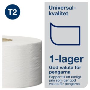 Sammanfattningsvis är Tork Mini Jumbo Toalettpapper ett utmärkt val för verksamheter som behöver en tillförlitlig, kostnadseffektiv och miljövänlig lösning för sina toalettutrymmen. Detta system garanterar inte bara att grundläggande hygienbehov uppfylls utan även att verksamheten kan upprätthålla en hög nivå av service och tillgänglighet för sina användare.