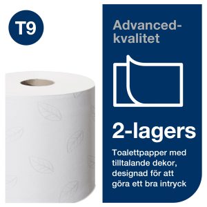 Tork Toalettpapper T9 SmartOne Advanced Mini snabbupplösande egenskaper minskar dessutom risken för stopp i avloppet, vilket är avgörande för att upprätthålla ett fungerande och hygieniskt toalettutrymme. Detta minskar behovet av regelbundna reparationer och skapar en mer problemfri miljö för användare. Det mjuka tvålagerspappret erbjuder hög komfort och en känsla av kvalitet som uppskattas av besökare, vilket gör Tork Toalettpapper T9 SmartOne Adv Mini till ett utmärkt val för verksamheter som prioriterar en positiv användarupplevelse.