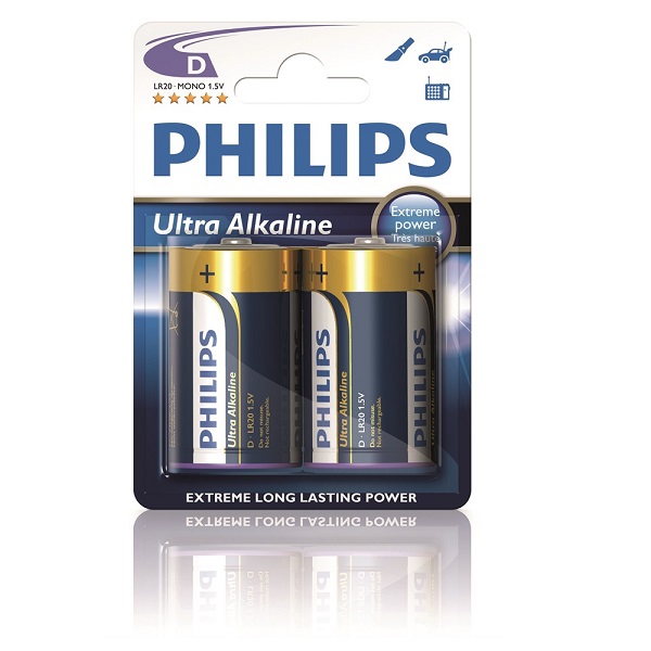 Batteri Philips D LR20 Alkaliska 2st/frp