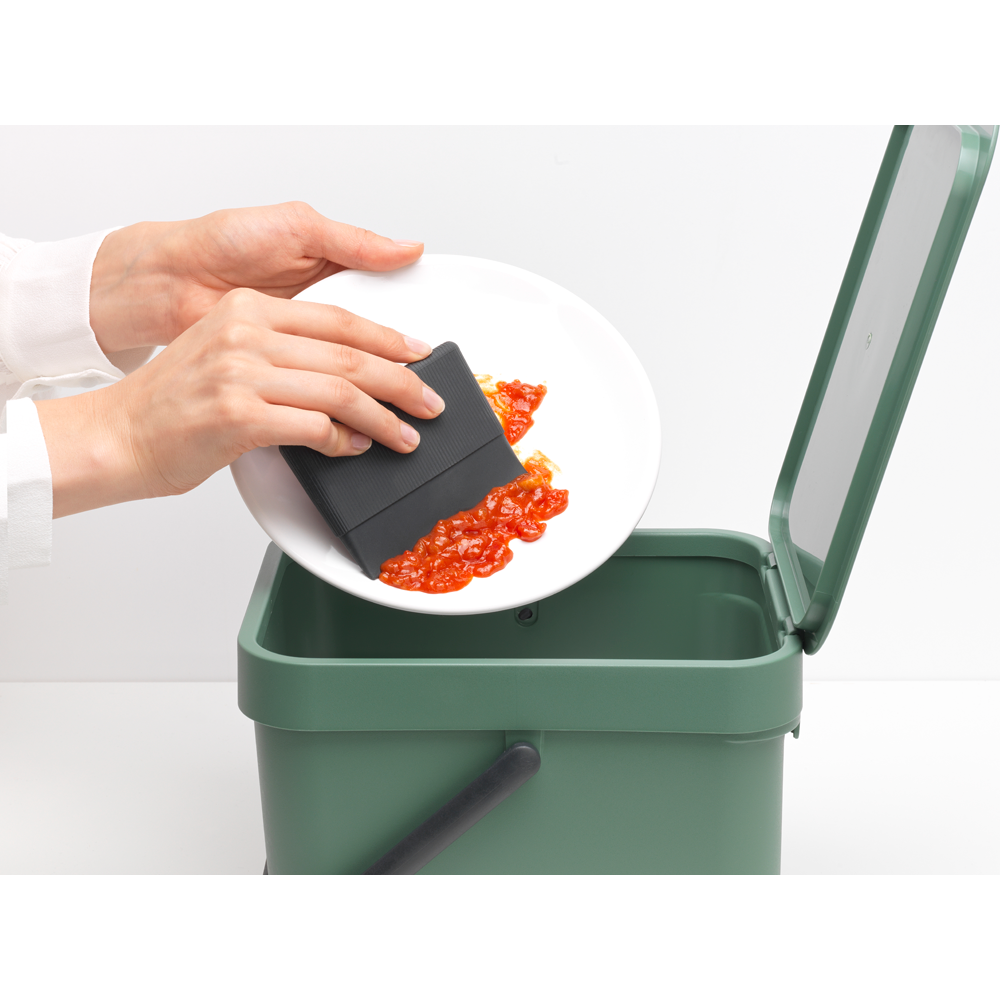 Skrapar effektivt bort matrester från tallrikar, diskbänk och bänkskiva