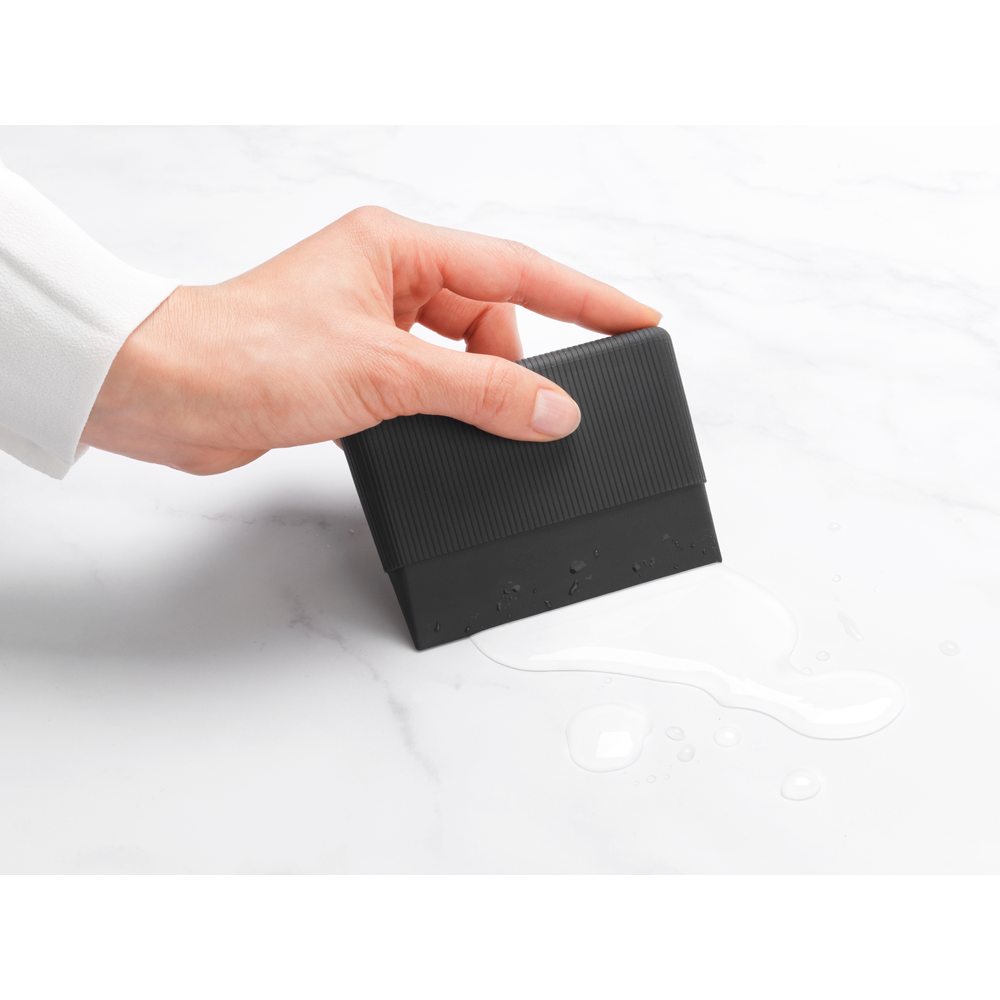 Diskskrapa Brabantia SinkSide Mörkgrå är ett praktiskt och mångsidigt köksredskap som gör det enkelt att skrapa bort matrester från tallrikar, kastruller och köksbänkar - direkt ner i diskhon. Den flexibla silikonkroppen anpassar sig efter ytan, medan det ribbade greppet ger ett halkfritt och bekvämt handhavande även med blöta händer.