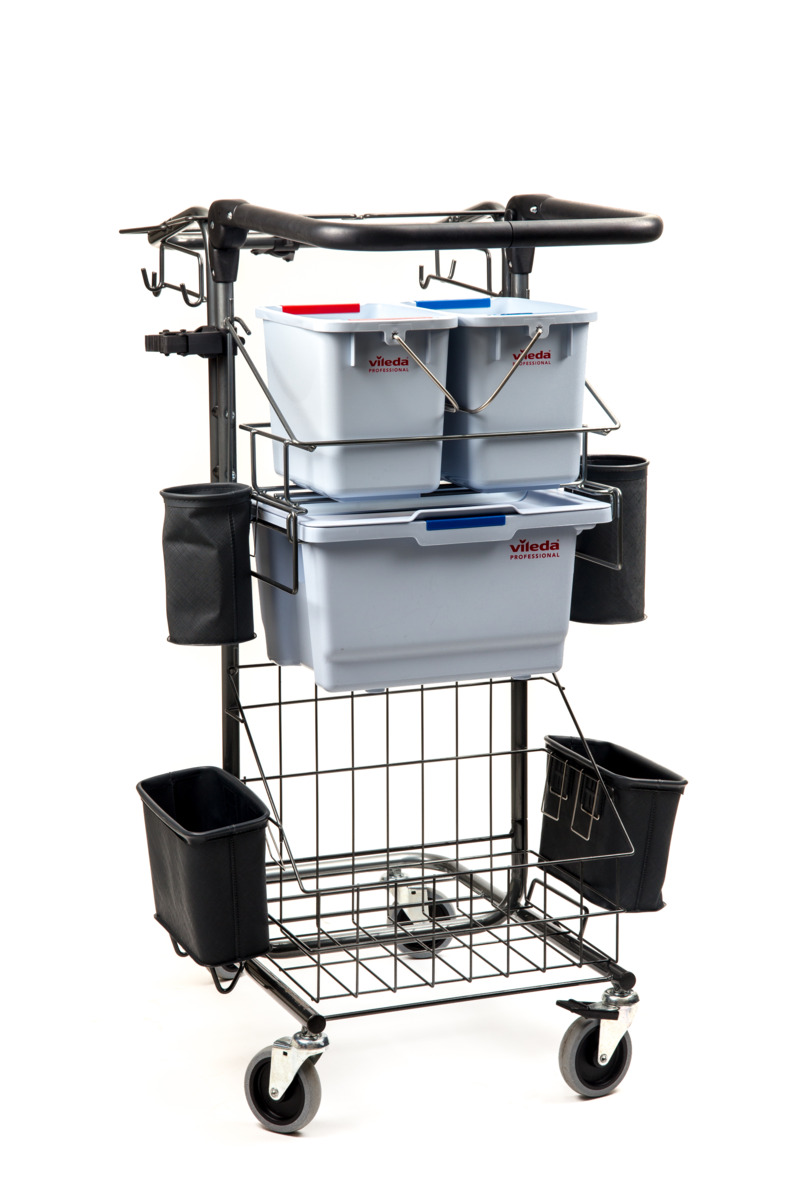 Utformad med effektivitet i fokus är vagnen utrustad med en moppbox med lock, färgkodade hinkar i rött och blått samt en trådkorg som även är kompatibel med moppboxen. Det patenterade locket möjliggör enhandsöppning - praktiskt när tiden är knapp och händerna fulla.