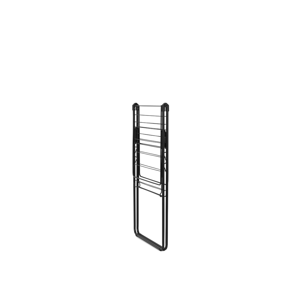 Torkställning Brabantia HangOn 15m Matt Svart är en smidig, hopfällbar lösning för effektiv inomhustorkning - perfekt för dig som vill spara plats utan att kompromissa på torkyta. Med 15 meter linlängd erbjuder ställningen tillräckligt med utrymme för en full maskintvätt, och den stilrena mattsvarta designen gör den till ett diskret inslag i hemmet.