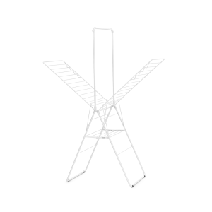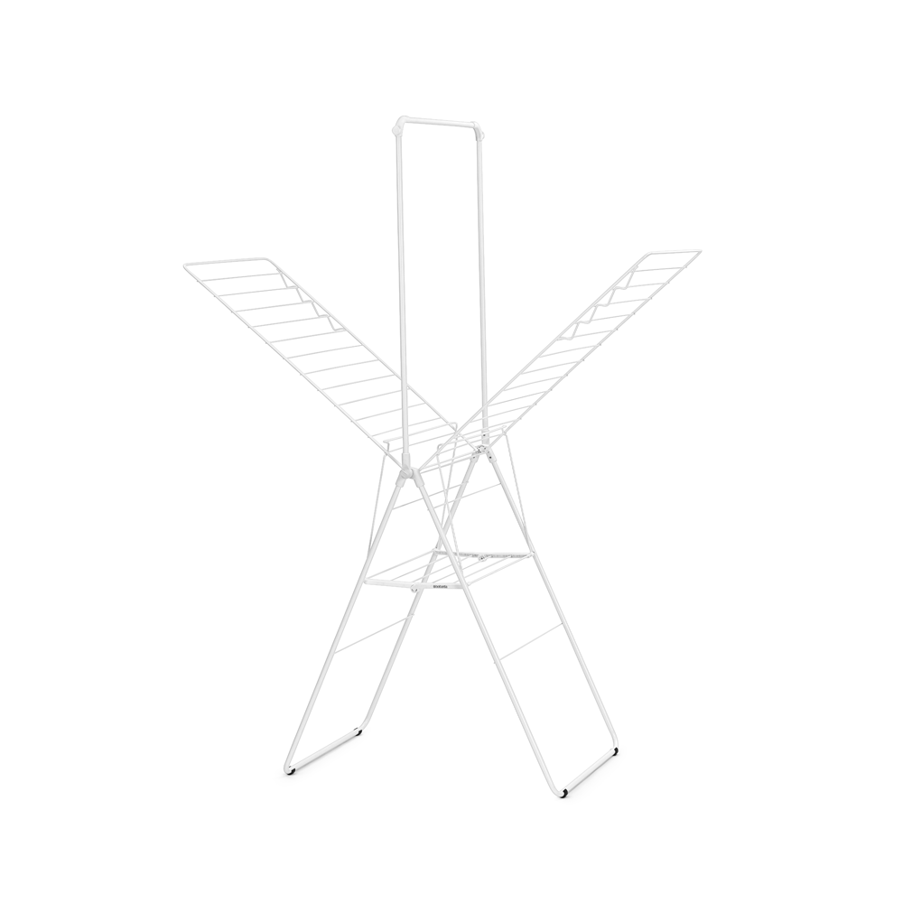 Torkställningen är hopfällbar och enkel att ställa undan när den inte används. Den har åtta inbyggda krokar för galgar samt en extra hängstång som klarar upp till 10 kg - perfekt för skjortor, klänningar och andra plagg som behöver hängas. Transportlås och barnsäkring gör att du tryggt kan flytta och använda ställningen utan risk för att den fälls ihop av misstag.