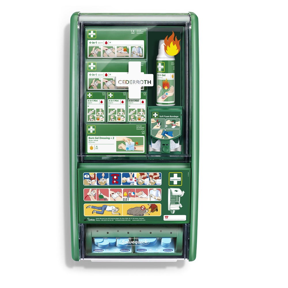 En professionell och kompakt lösning som bör finnas i varje första hjälpen station där risk för brännskador förekommer.