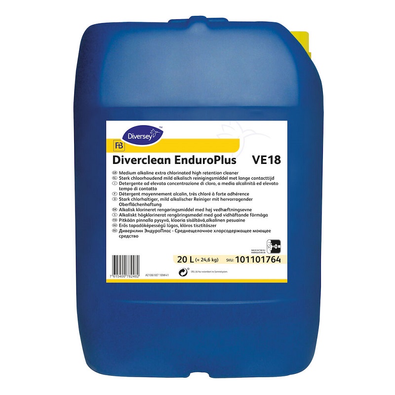 Rengöring Desinfektionsmedel Enduro Plus VE6 20liter kombinerar egenskaperna hos skumrengöring med gelformuleringens effektivitet - vilket gör den idealisk för användning i anläggningar där fett, olja och annan svår smuts är vanligt förekommande, såsom kött- och fjäderfäbearbetning, fiskindustri och grönsaksproduktion. Produkten sköljs snabbt och effektivt av ytor, vilket sparar både vatten och arbetstid.